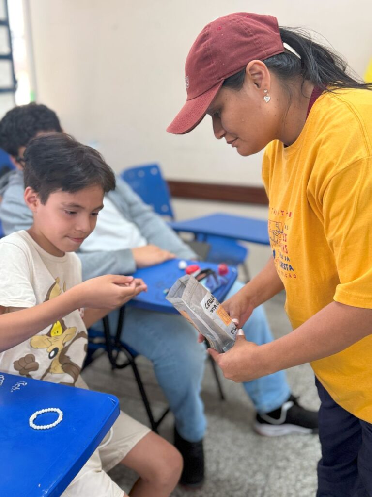 “A arte é algo que impulsiona, traz muito sentimento e é isso que eu estou tentando transmitir para eles, mais do que qualquer técnica: esse sentimento de preservação, de um olhar mais para a natureza, de um cuidado a mais, de se interessarem mais por isso tudo que é nosso”, explica a artista indígena Kina, do povo Kokama.