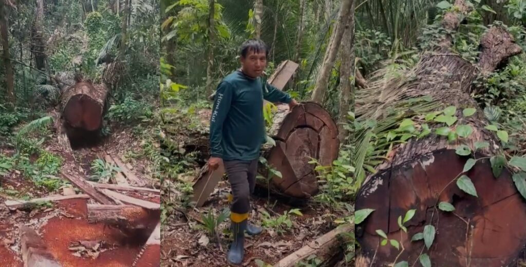 Nos vídeos, os Huni Kuĩ relatam a derrubada de espécies como mogno, cedro, miratoá, balso e outras. Noutro trecho, as lideranças chegam à área agora ocupada pelo pasto e o gado. De acordo com eles, dentro da TI Kaxinawá do Seringal Independência. Os indígenas contabilizaram ao menos 200 cabeças de boi, e mostram a casa de um dos irmãos do fazendeiro conhecido como Barrote.