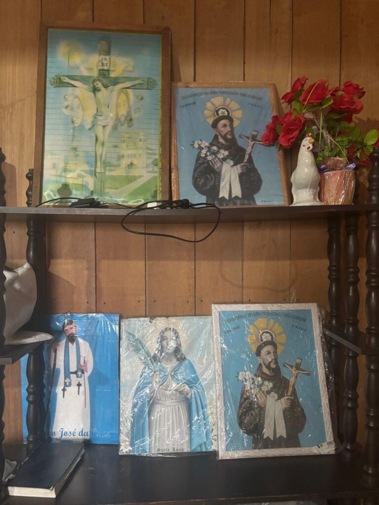 Altar típico das casas nos seringais do Vale do Juruá. A foto foi tirada na casa de Sônia e Raimundo, casal veterano da comunidade Ingazeira, rio Boa Fé, Guajará – Amazonas. (Foto de Tatiane Sousa)